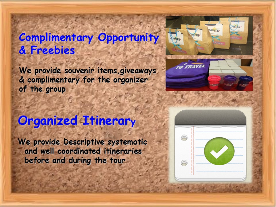 As an accredited tour operator and an active member of several travel affiliates for local and national associations, our aim is to extend quality service for local and international clients.